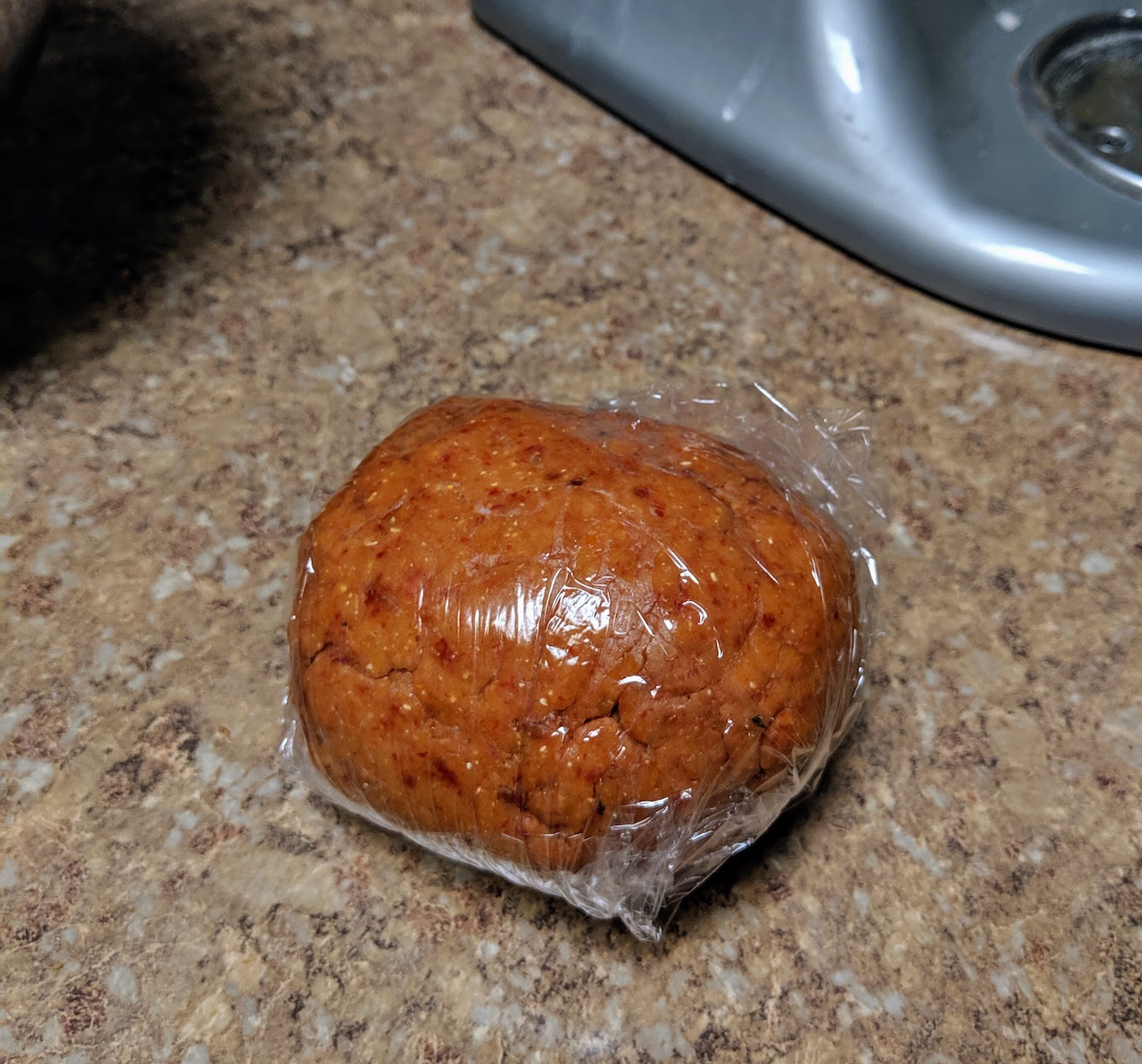 The dough won’t form a ball on its own, so after beating/kneading it, dump the clumps onto a floured work surface and form it into a ball. Next, wrap the ball in plastic wrap and put it in the fridge to rest for at least 30 minutes.