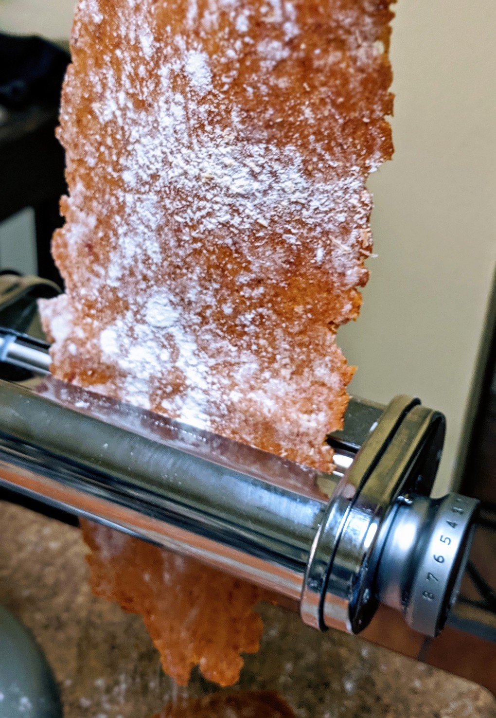 Next, reduce the roller width by two notches and repeat the above process. On my rollers I went from setting 1 to setting 3. After each sheet has been rolled on setting 3, reduce the width two more notches and roll each one again. The sheets will start getting really long so be sure to handle them carefully so they don’t tear.