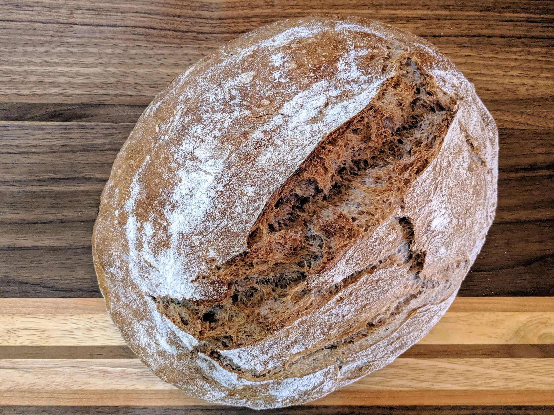 I baked the loaf in a preheated dutch oven at 450’F for 38 minutes covered, then removed the lid of the dutch oven and baked for an additional 15 minutes.