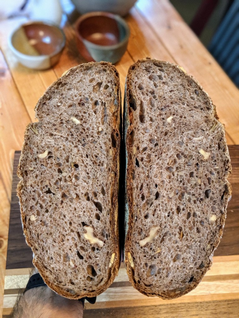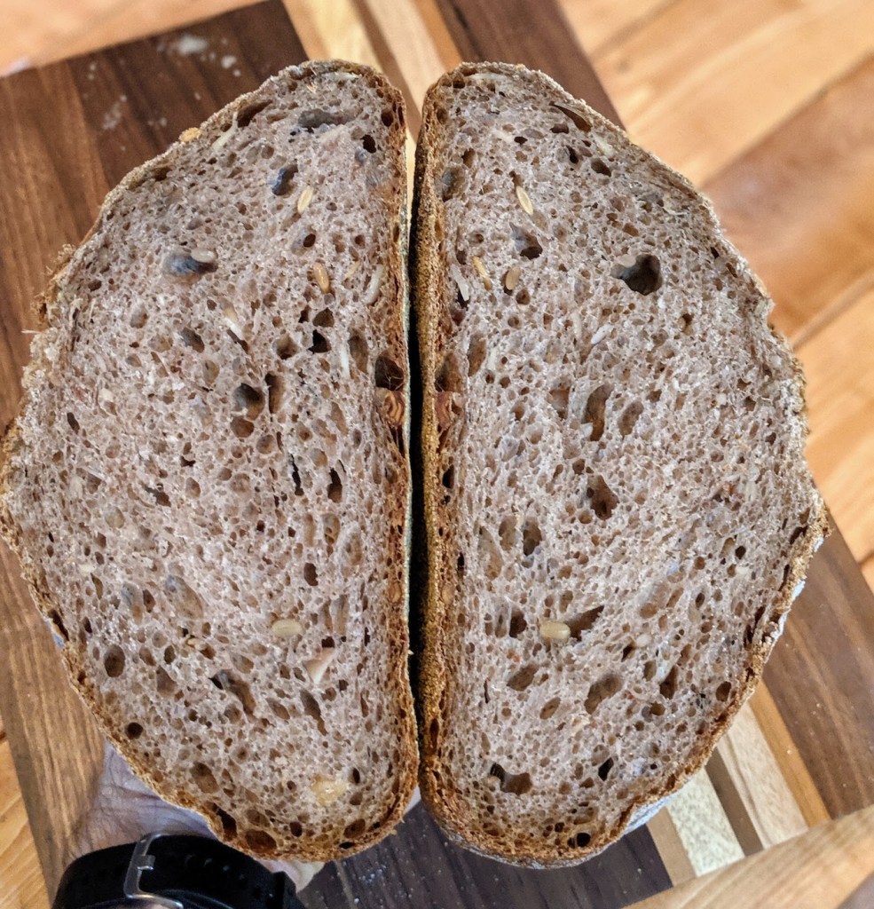 When eating the bread you get a nice flavor of the seeds and nuts along with the whole grain flavor from the spent grain flour. The spent grain also gives it a nice color.