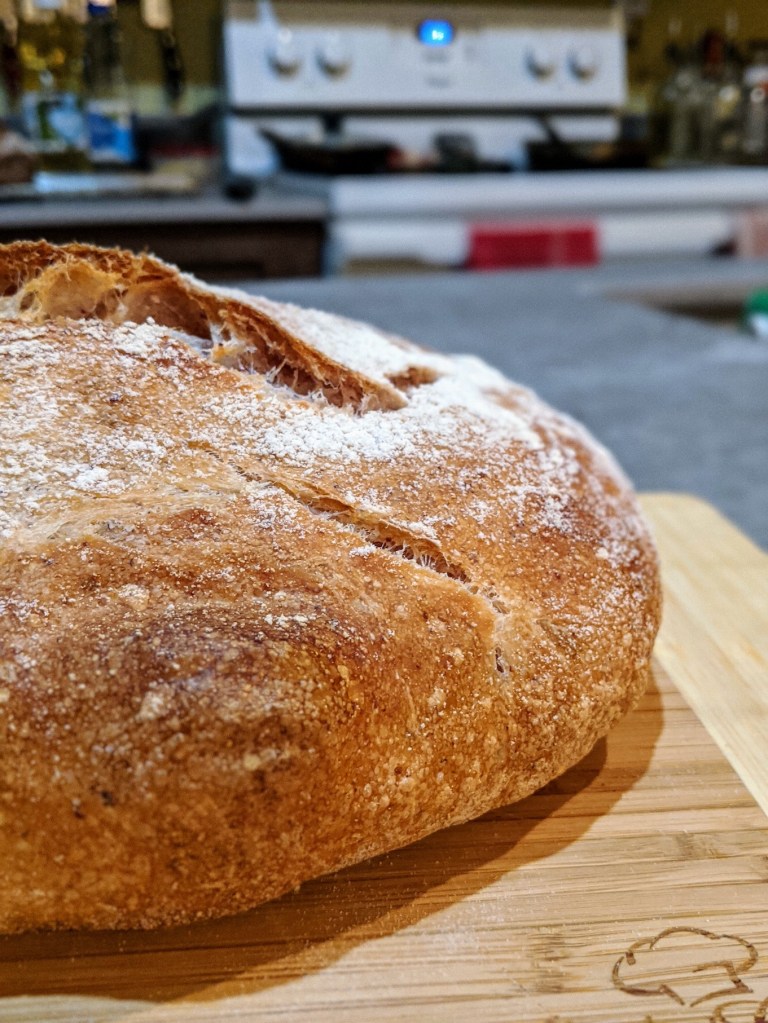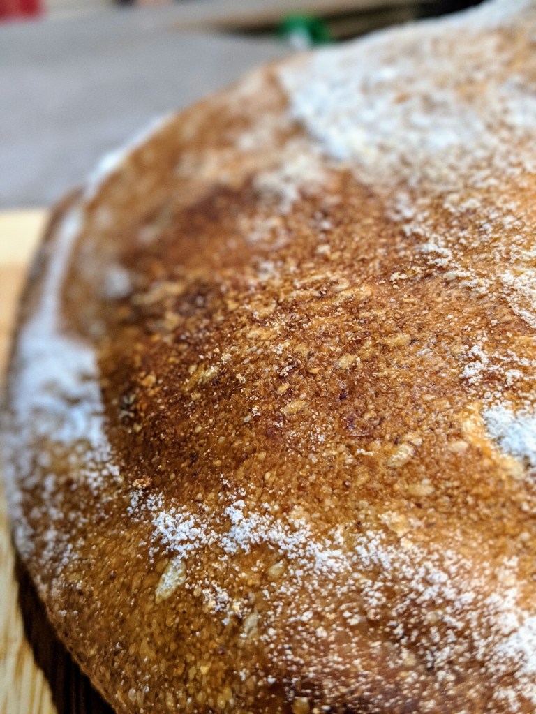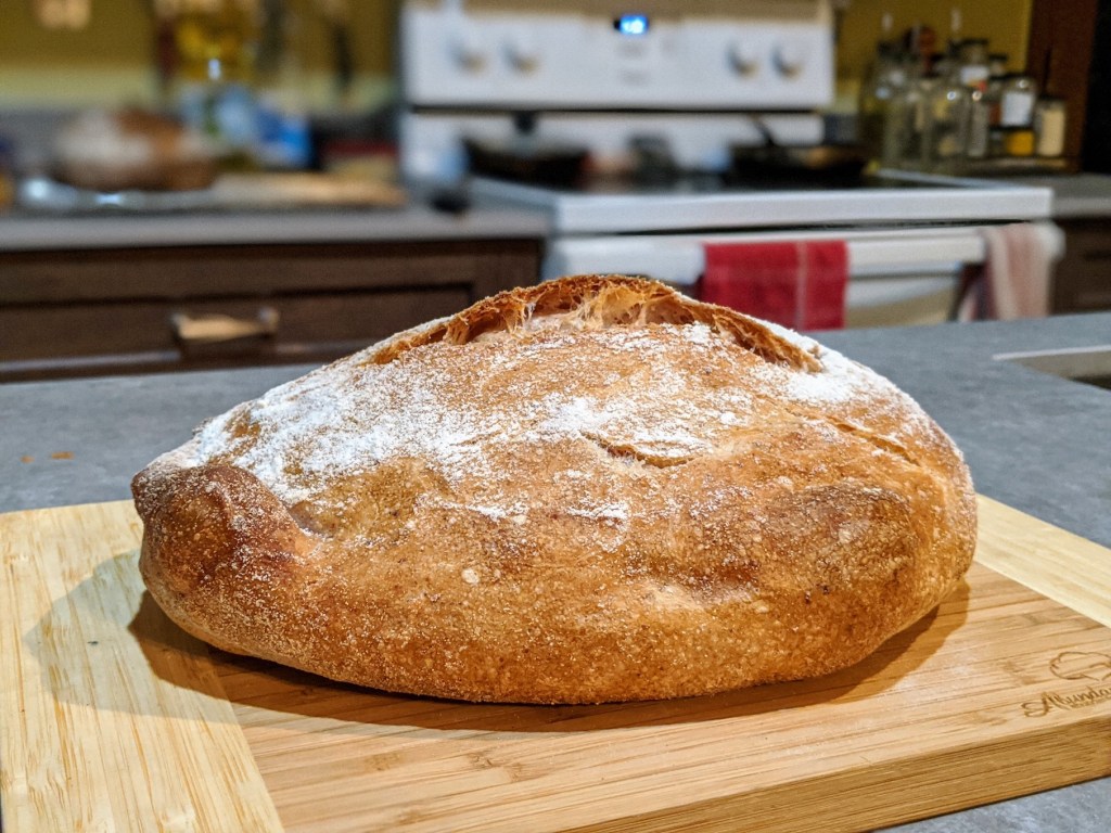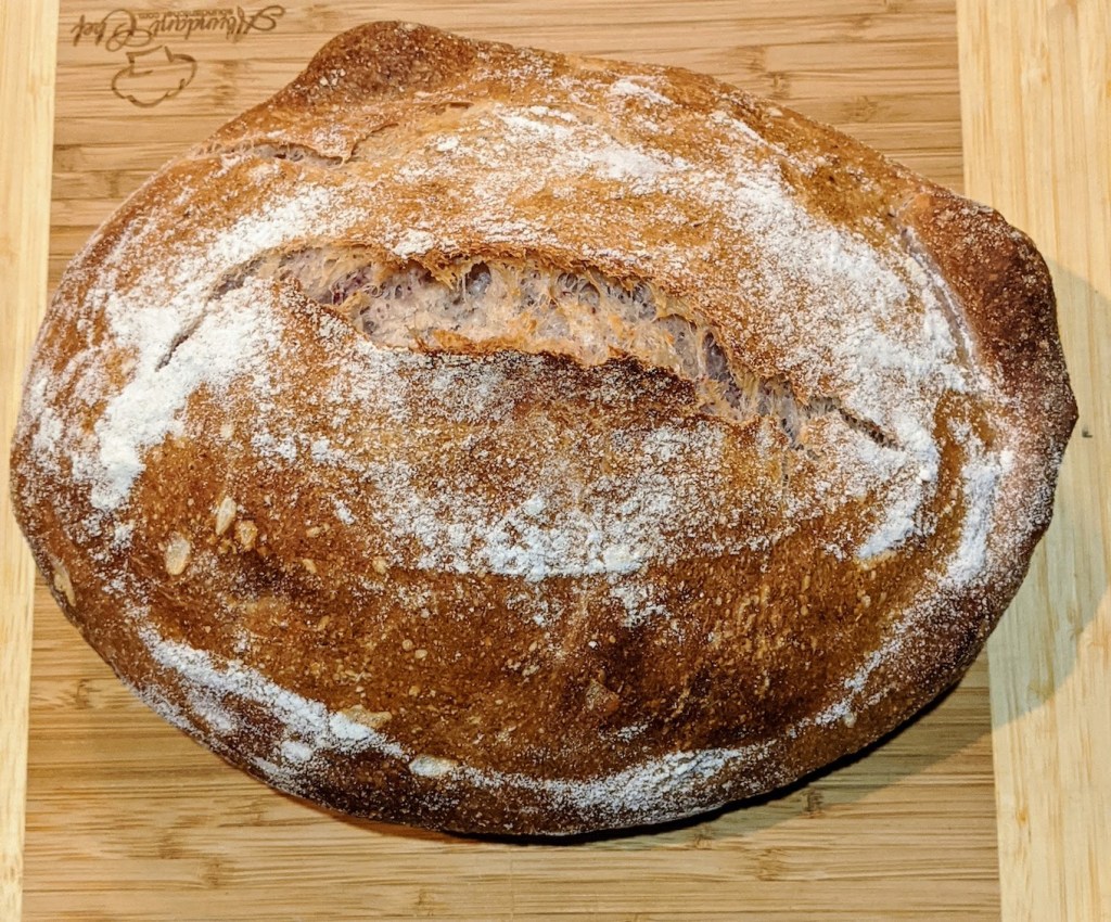 I baked the loaf in a preheated dutch oven at 450’F for 38 minutes covered, then removed the lid of the dutch oven and baked for an additional 16 minutes.