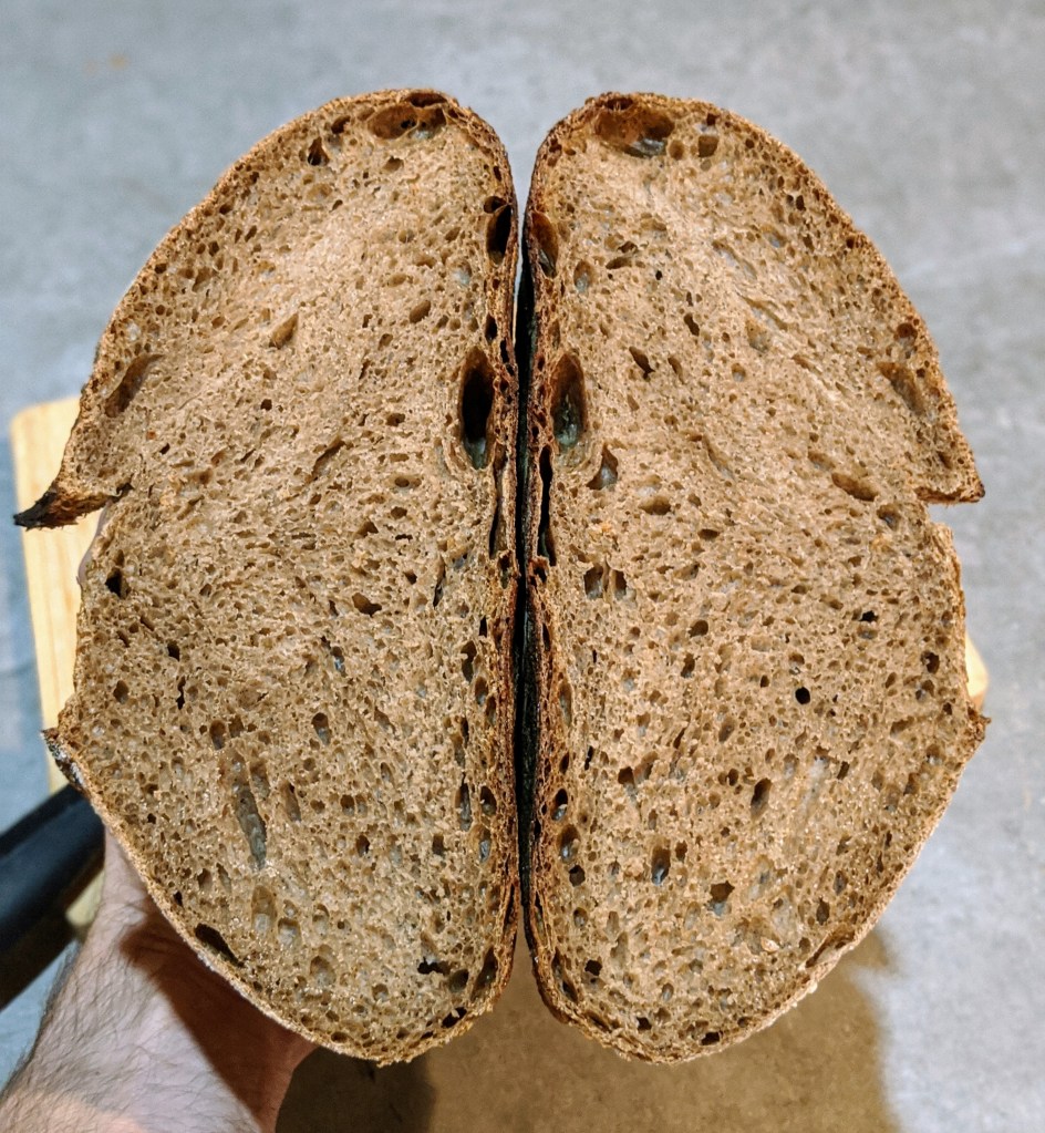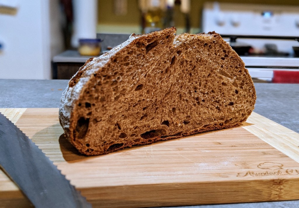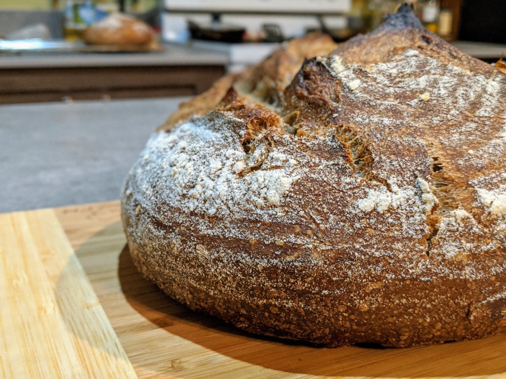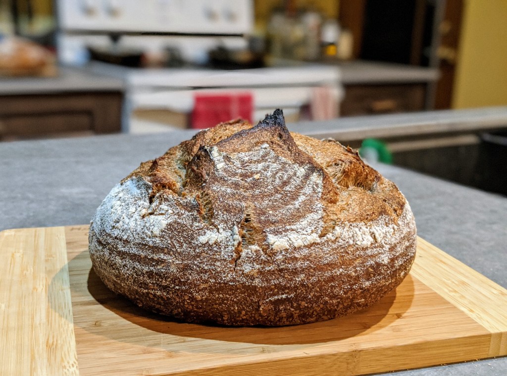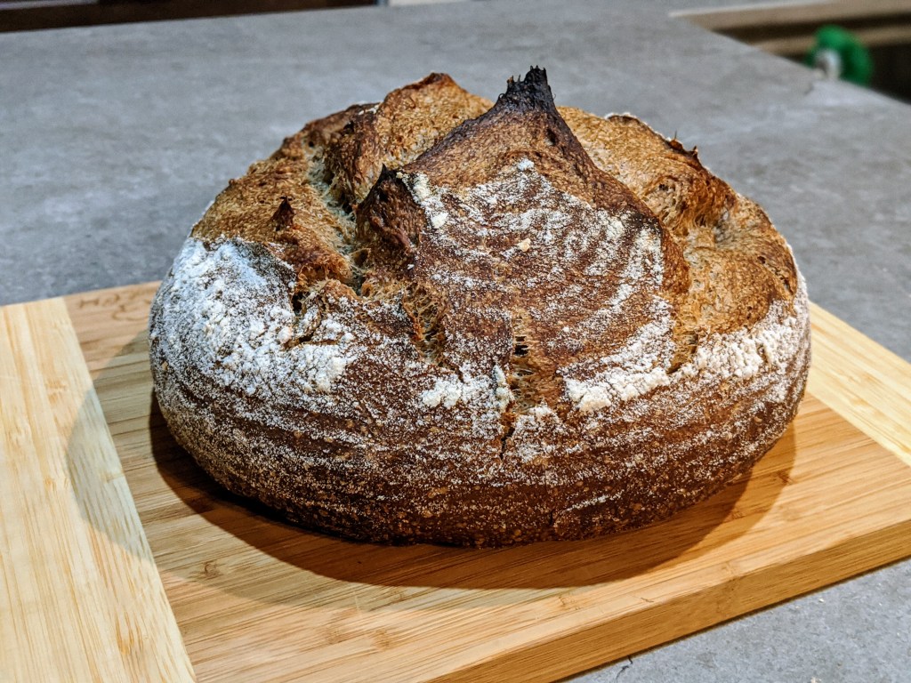 As I’ve said before, this sourdough culture works extremely well. The spent grain flour usually causes the dough to be a little on the tough side and usually cases some venting issues in the oven. I was hoping the longer bulk fermentation and proofing would have helped prevent this but that’s not really the case. The dough fermented and proofed well and had a good oven spring, but the venting is a little fat. Next time I’ll use a lame and score it to see if I can get some better venting.