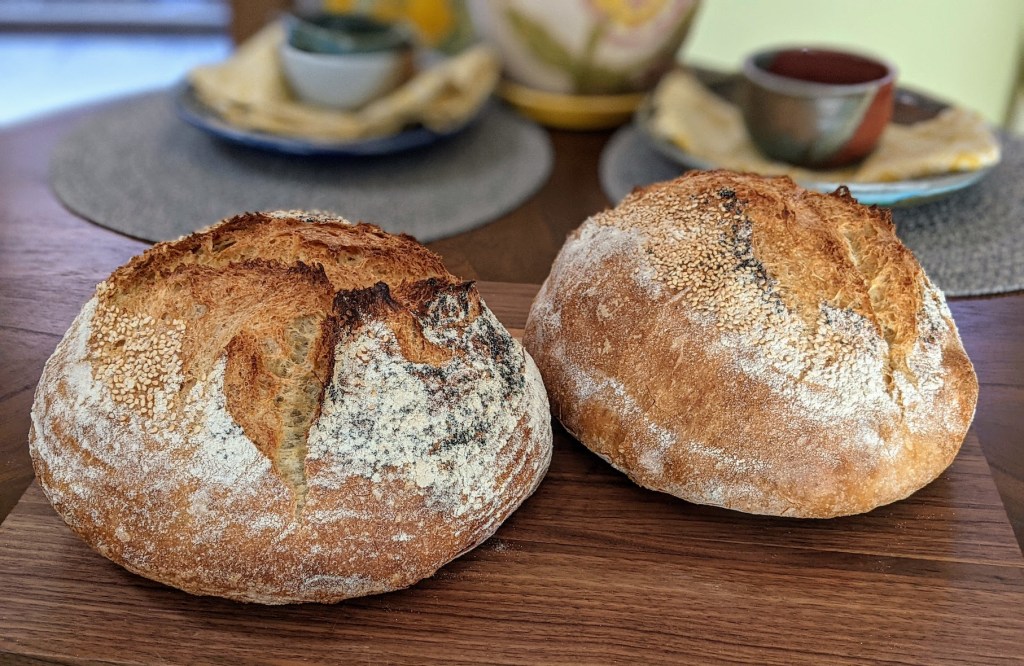I baked the loaves in preheated dutch ovens at 450’F for 20 minutes covered, then removed the lid of each dutch oven and baked for an additional 31 minutes.