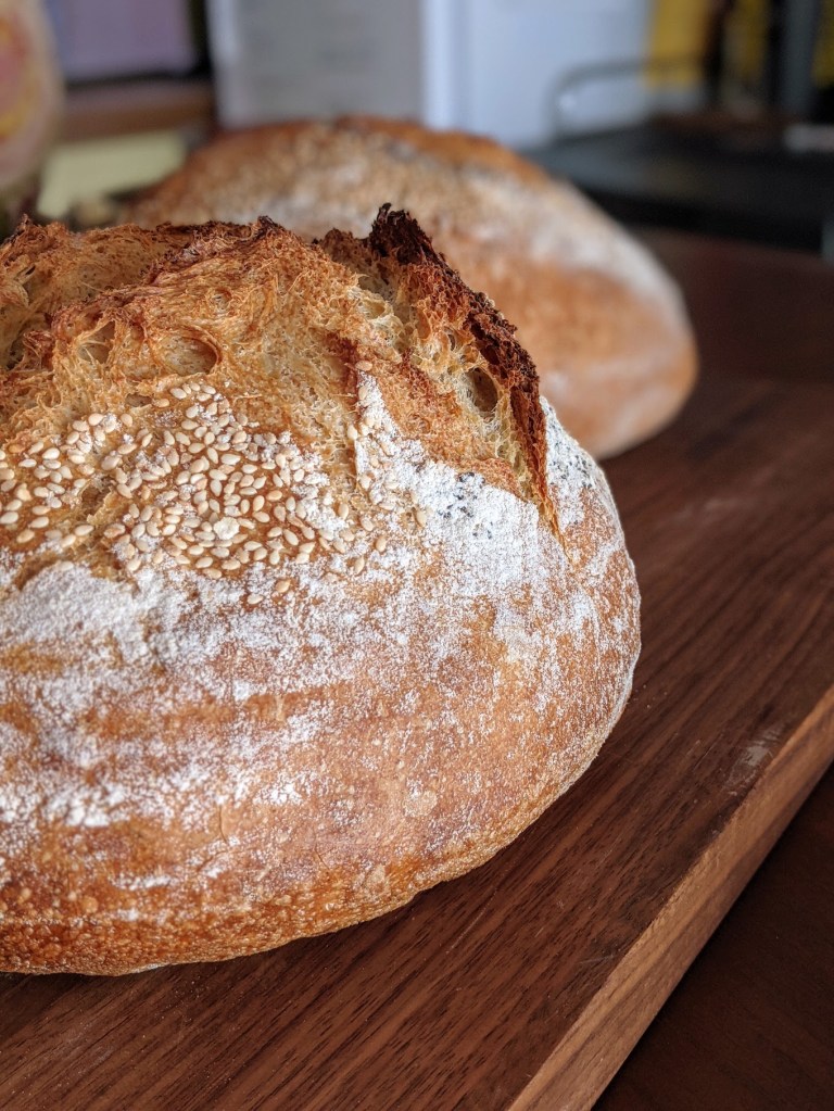 I proofed for just under an hour in bannetons before placing them in dutch ovens.