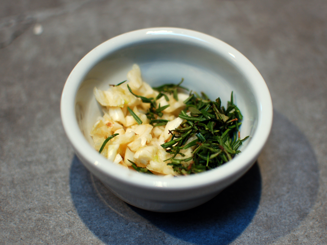 30 minutes before mixing the bakers yeast, rosemary, garlic and salt into the dough, I performed an autolyse by mixing the water and flours together.