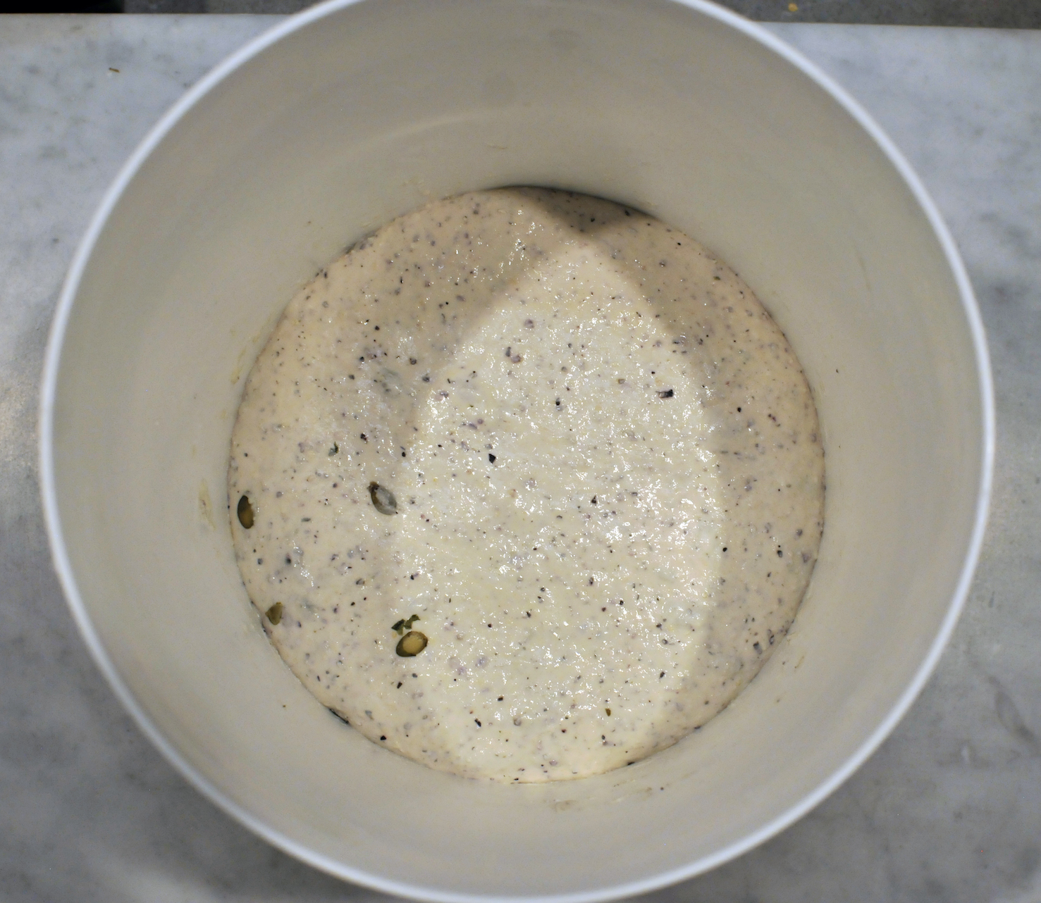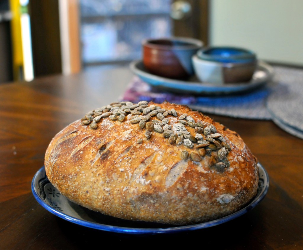 I wanted to make a “New Mexico” sourdough but had recently made a loaf with green chile and another with red chile. What else is a typical New Mexican ingredient? Blue corn! Pepitas (or pumpkin seeds) are also used in a lot of Mexican and New Mexican cooking. Let’s combine these together into one delicious loaf!