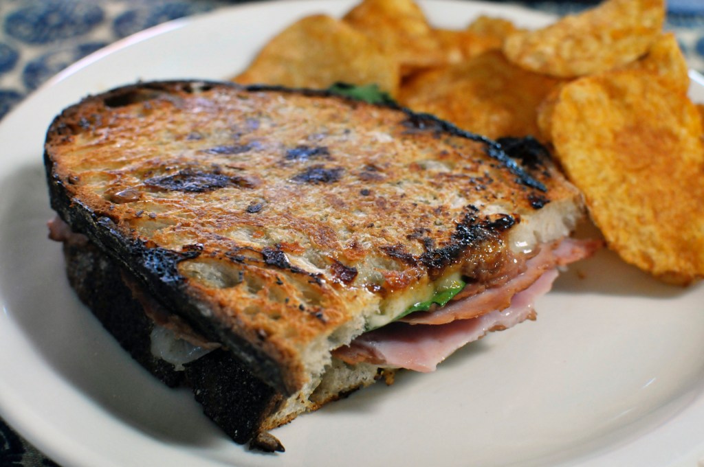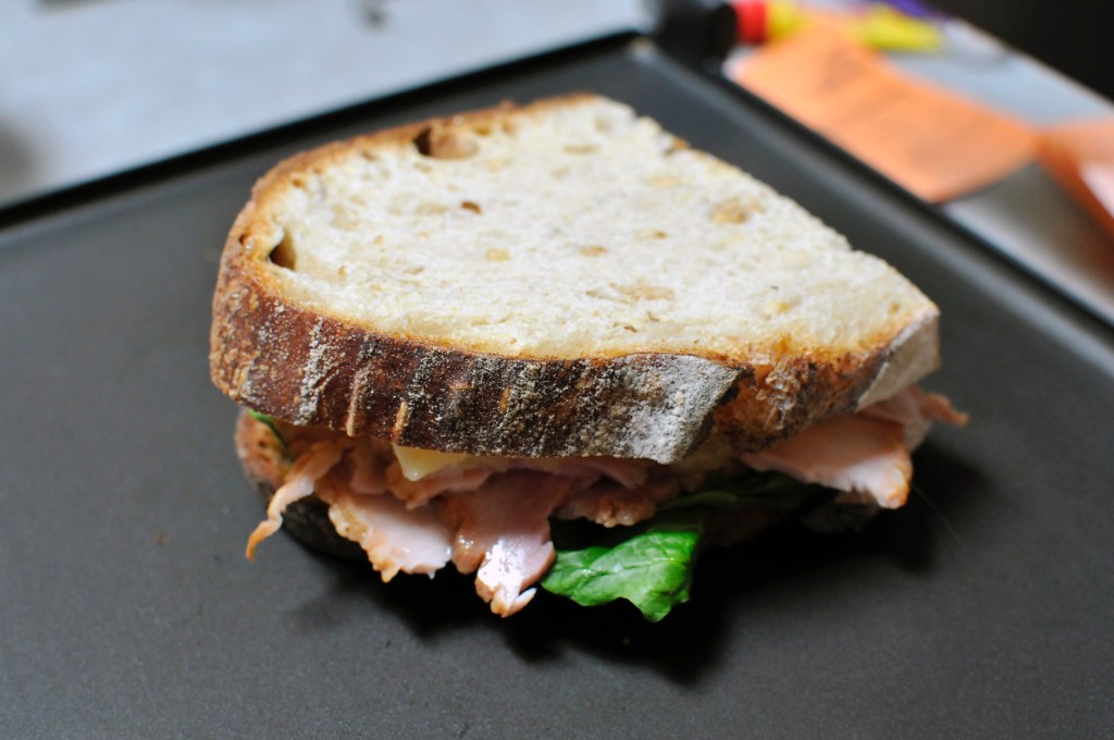 I still had some bread left over and made a pressed sandwich with it as well. The bread worked really well with the sandwich. The crumb was tight enough that nothing really leaked out during the sandwich making process.