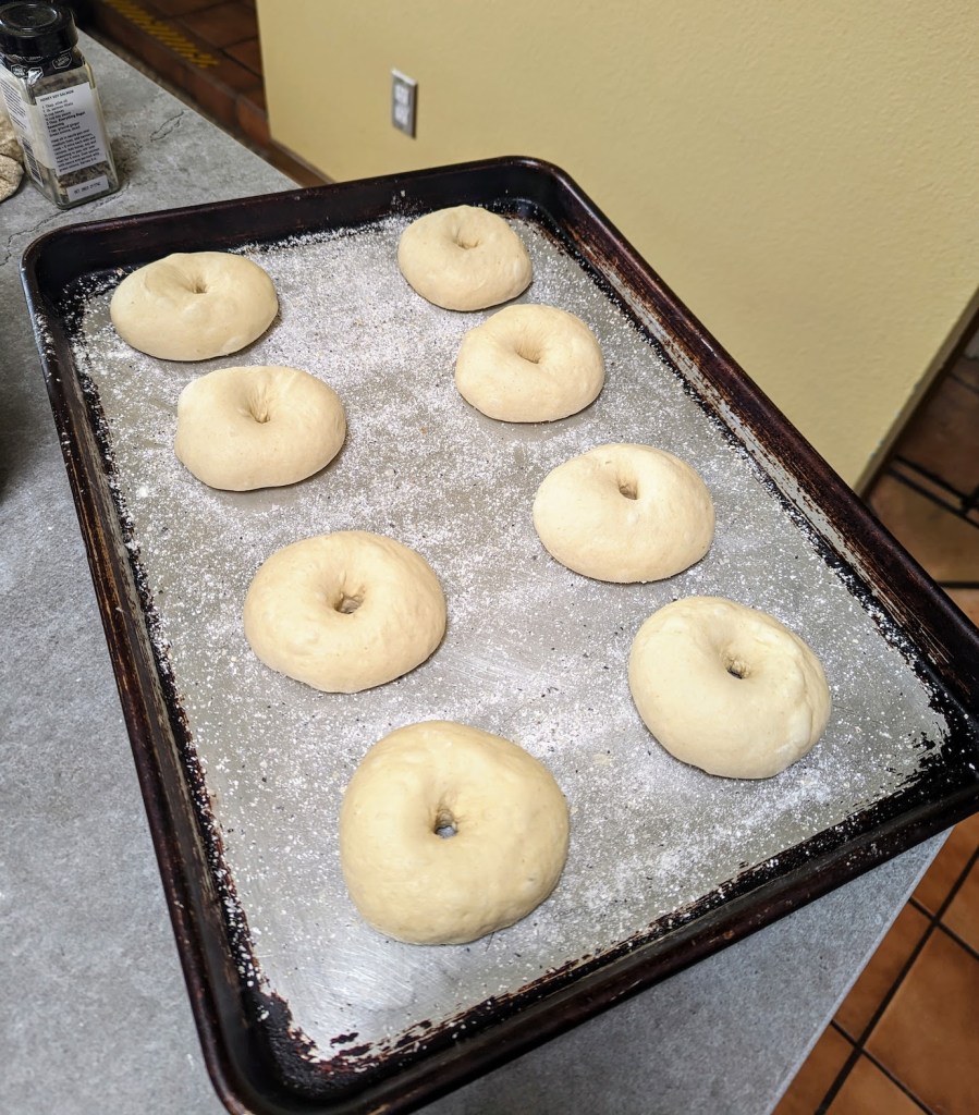 This recipe makes eight “standard size” bagels. Next time I’ll double the recipe so I can have some extras in the freezer.