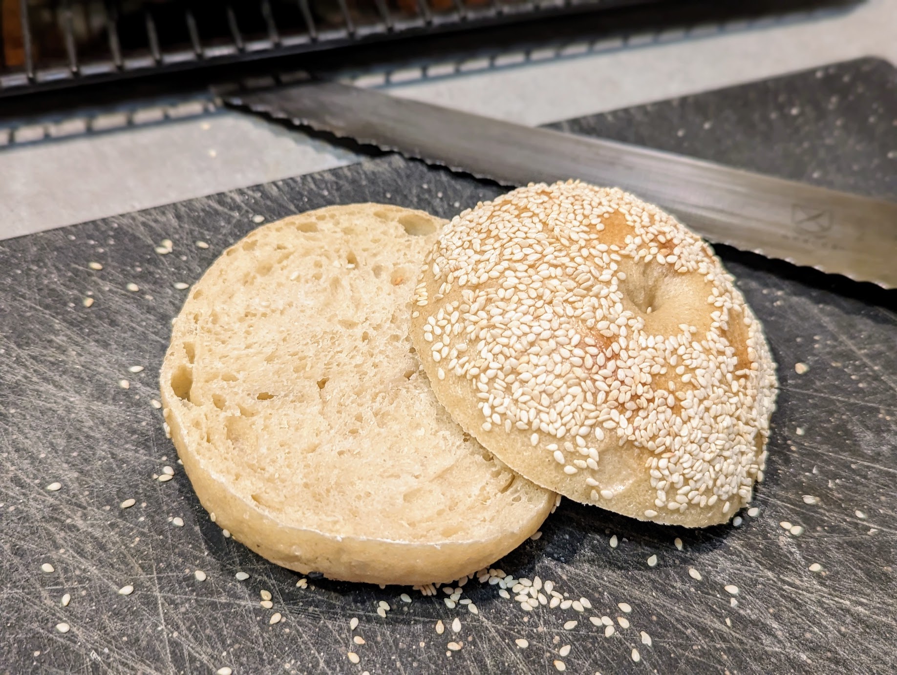 - Try to get the crumb a little tighter by rolling each bagel when making the hole