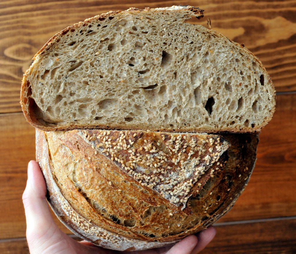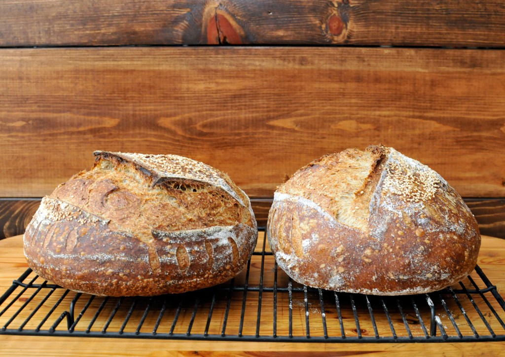 I baked the loaves at 450’F for 20 minutes covered, then removed the lid of the dutch ovens and baked for an additional 30 minutes.