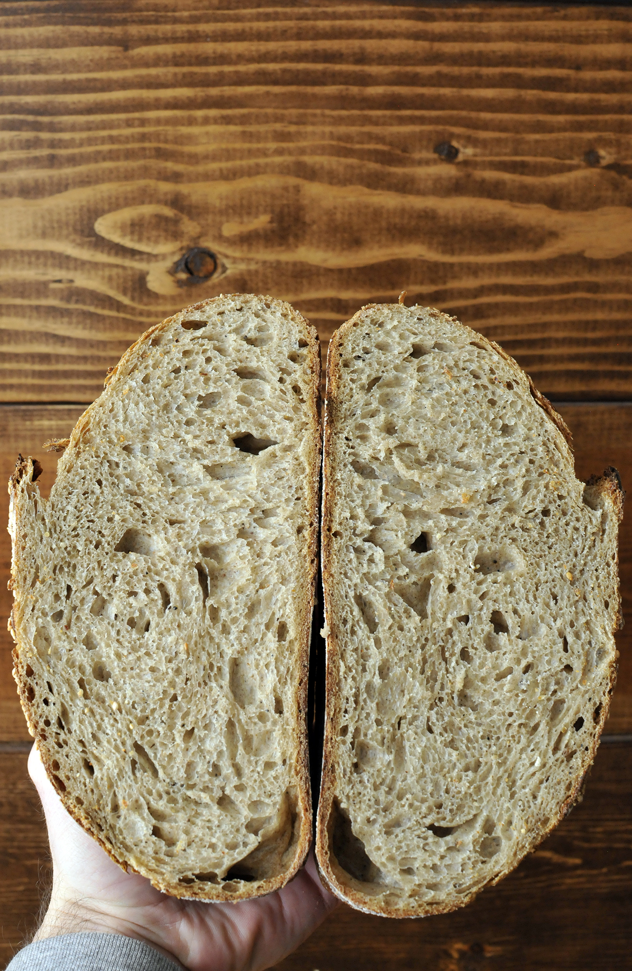 These loaves rose well in the oven thanks to a quick and deep score I gave each loaf. They were already looking great when I took the lids off the dutch ovens, but the additional 30 minutes really helped to caramelize and add some color to them.