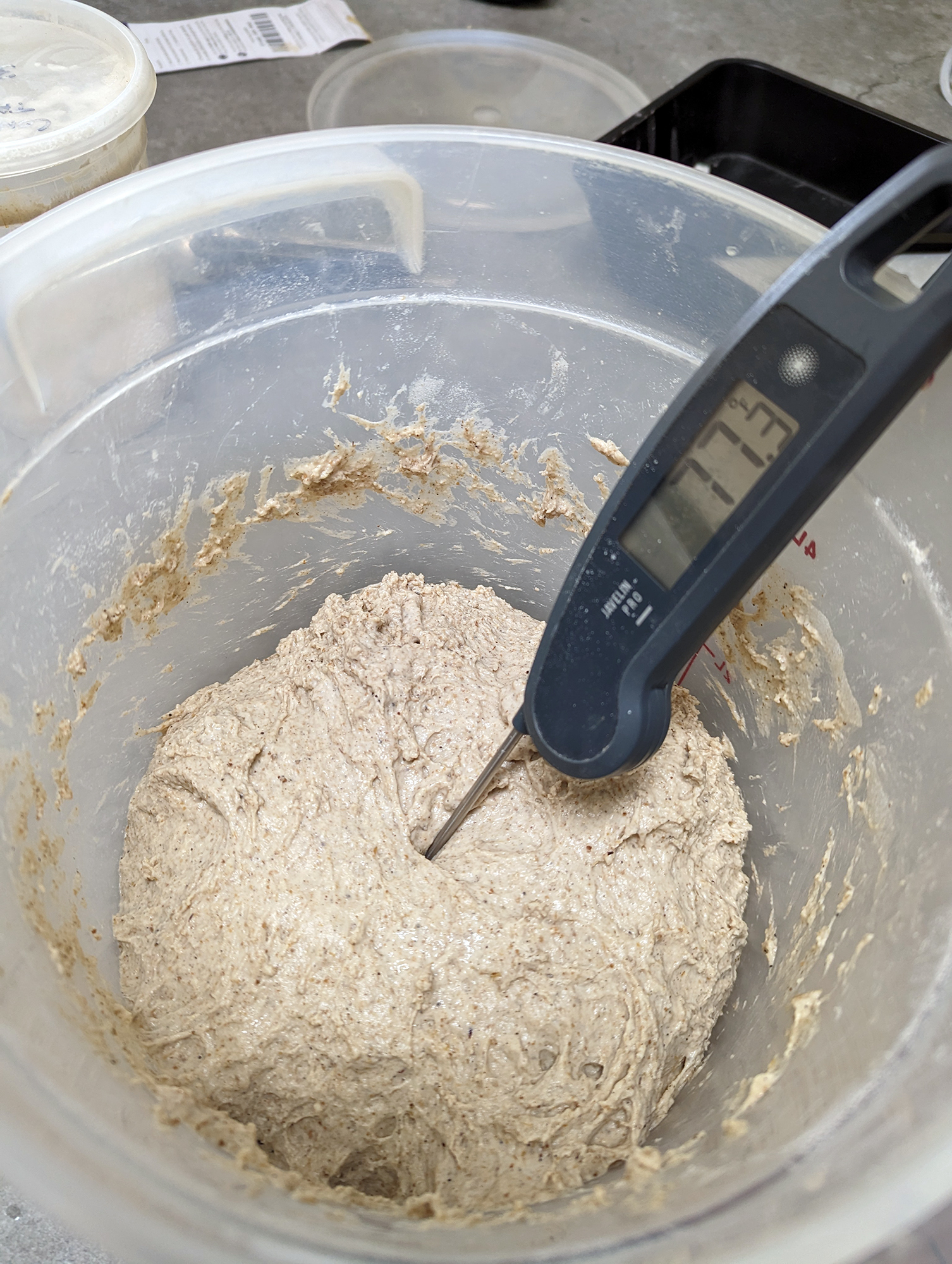 I’ve been playing around with various bread recipes using Ardent Mills Kyrol high protein flour. The protein percentage clocks in at 14.3% (compared to ~12% for bread flour and 10-11% for AP flour). The high percentage of protein means a lot more gluten development. This recipe tempers the high protein content slightly by adding some All Purpose flour along with some dark rye and spent grain flours.