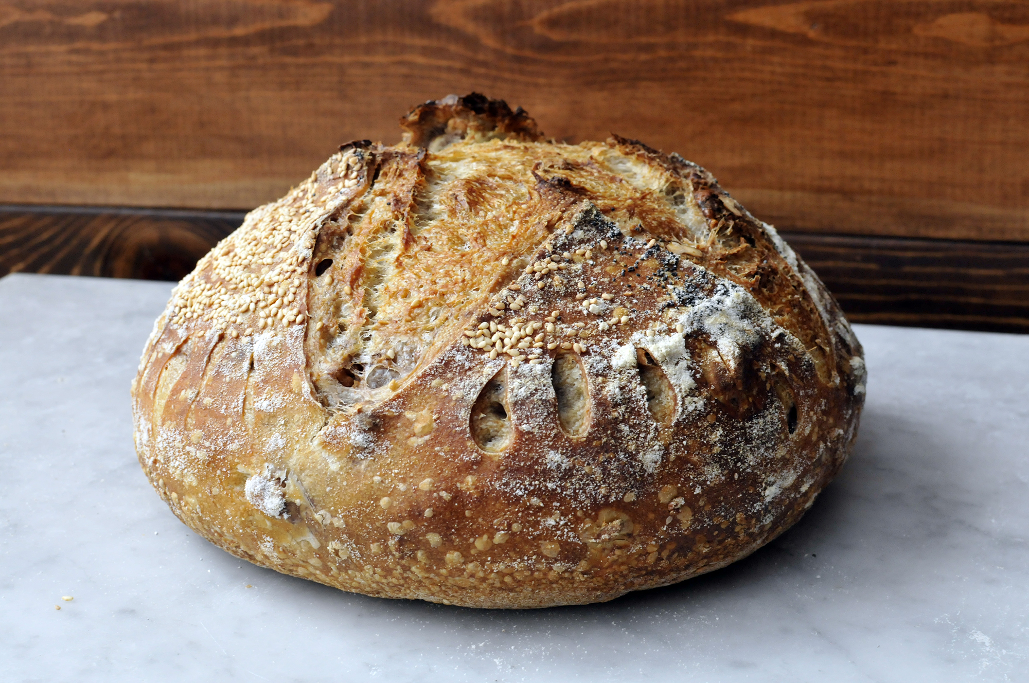 Once the dough had doubled, I shaped the loaves and put them in bannetons that I liberally dusted with rice flour. I added some sesame and poppy seeds to the bannetons for some extra visual appeal. The bannetons were wrapped in vegetable bags and then placed them in the fridge for a 17 hour cold proof.