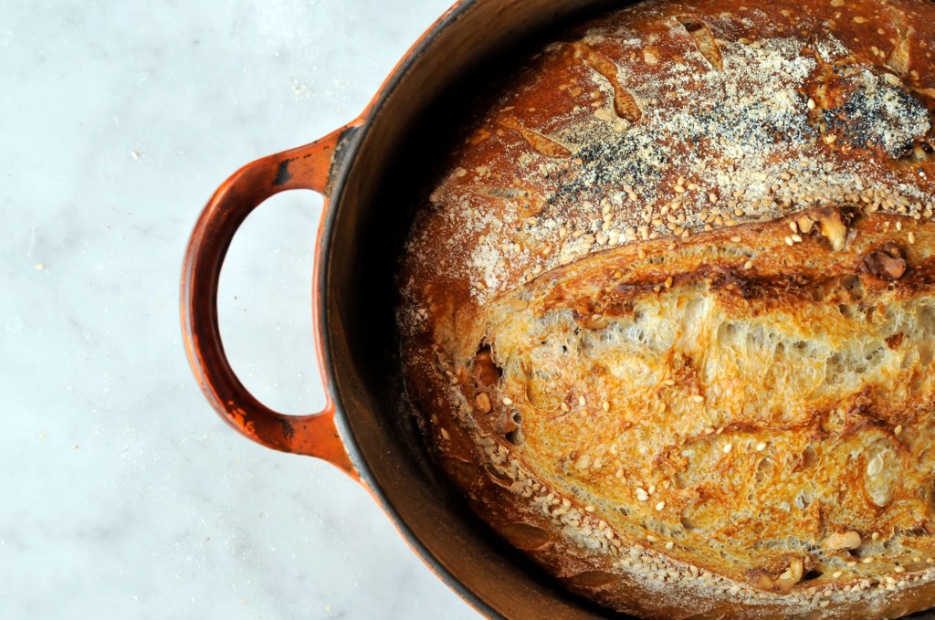 I baked the loaves at 450’F for 20 minutes covered, then removed the lid of the dutch ovens and baked for an additional 30 minutes.